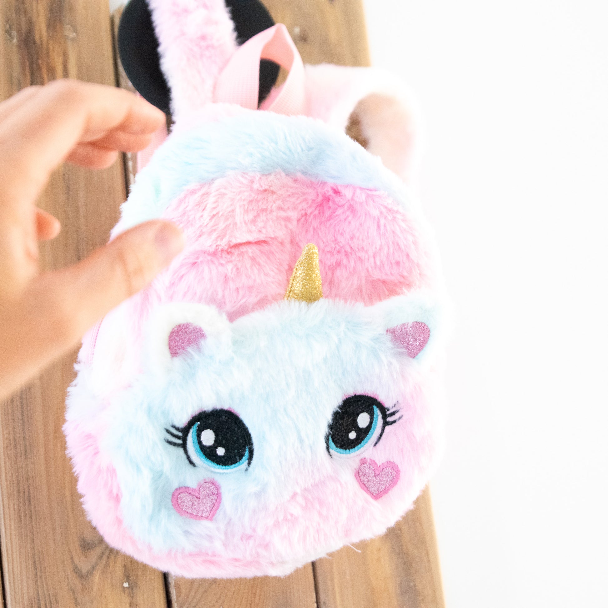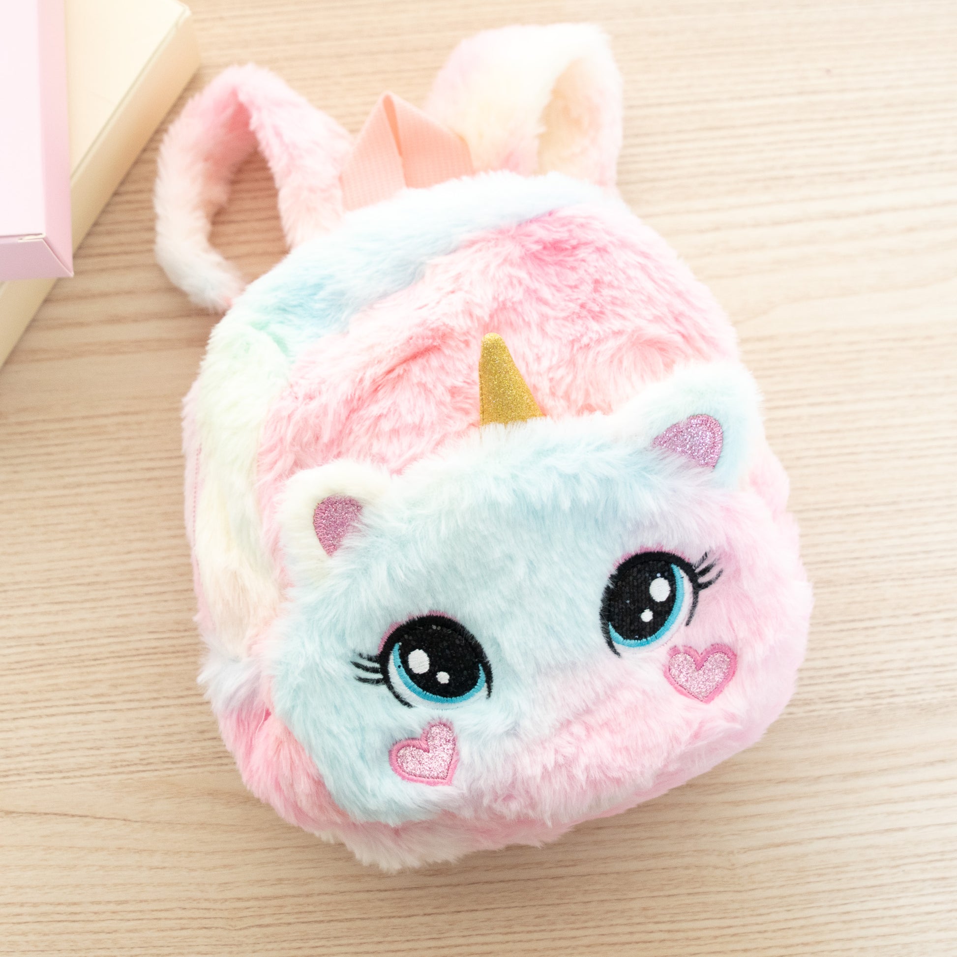• Sac à dos peluche en forme de chat licorne
